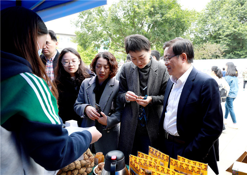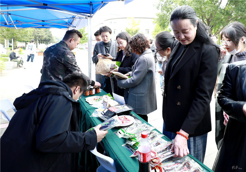 参加活动的校领导、各分党委党总支负责人,各学院、部门分管扶贫工作领导及联络员,与各学院学生代表一起,共同参观了主题为“摆脱贫困”的beat365在线唯一官网脱贫攻坚成效展,并在学校定点帮扶的得荣县、盐源县扶贫特色农产品展销区,品尝体验、“以购代捐”扶贫农产品。