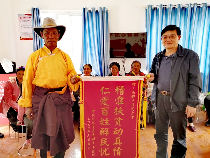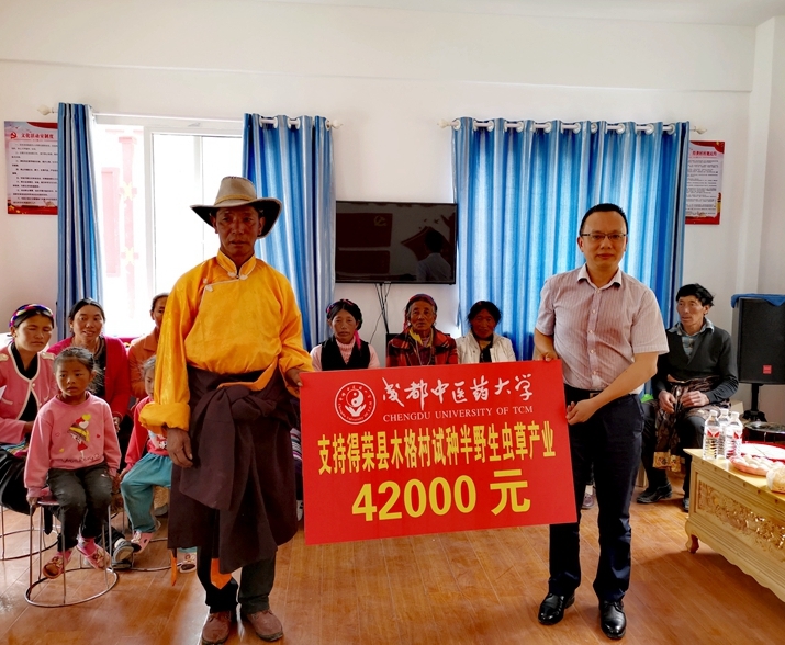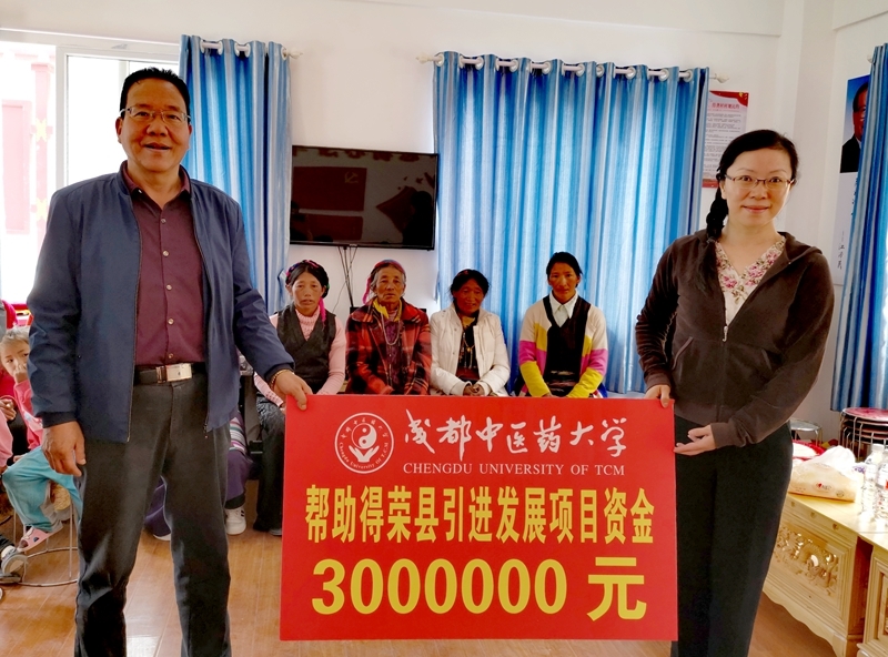 座谈会上,举行了学校对口帮扶捐赠仪式。学校帮助得荣县引进发展项目资金300万元,安排6万元支持得荣县木格村全体农户安装太阳能热水器,安排4.2万元支持得荣县木格村试种半野生虫草。