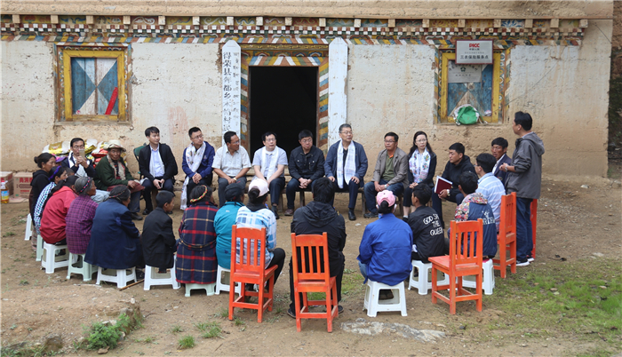 7月9日上午,余曙光一行来到海拔3400米的木格村,调研木格村集体经济发展重点项目——高山土豆种植项目、党员精准扶贫中蜂养殖示范项目和新村房屋建设情况;看望、慰问困难群众,与在家的村民座谈,勉励他们积极行动,用自己的双手脱贫致富奔小康,并为全体农户带去米油等慰问品;勉励村干部、驻村干部同心协力,早日带领村民搬迁新村,坚决完成贫困村退出任务。余曙光、郑学斌和杨静“走亲戚”,分别到结对建档立卡户丁真曲扎、次仁彭错、次仁拉错的家里,了解生产生活、医疗教育和实际困难等情况,并送上慰问金。得荣县委副书记李南希、副县长缪荣陪同调研。