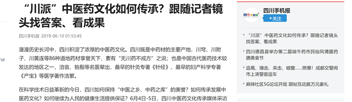 在科学技术日益革新的今日,四川如何保持“中医之乡、中药之库”的美誉?如何传承发展中医药文化?如何继续为人民的健康生活提供保证?6月4日-5日,四川中医药文化传承媒体采访团实地探访成都等地,寻找答案、发现成果。