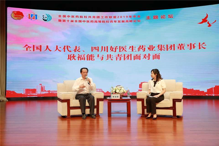 在第十届全国中医药高等院校青年发展高峰论坛上,国医大师、beat365在线唯一官网教授廖品正,全国人大代表、好医生药业集团董事长耿福能,全国政协委员、中国侨联副主席、四川省侨联主席刘以勤分别作报告,与会青年面对面交流自己的成长体会、人生感悟,鼓励中医青年坚定文化自信,热爱中医药,积极投身到振兴发展中医药的伟大事业中去。