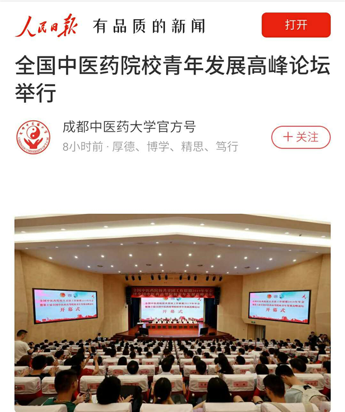 会议还发布了《全国中医药院校共青团工作联盟2019年年会暨第十届全国中医药高等院校青年发展高峰论坛成都共识》。