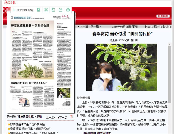 基础医学院副教授鲁法庭:春季赏花 当心过敏