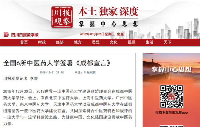 全国6所中医药大学签署《成都宣言》
