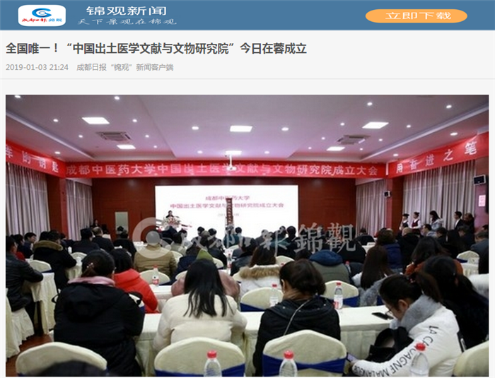 全国唯一!“中国出土医学文献与文物研究院”今日在蓉成立