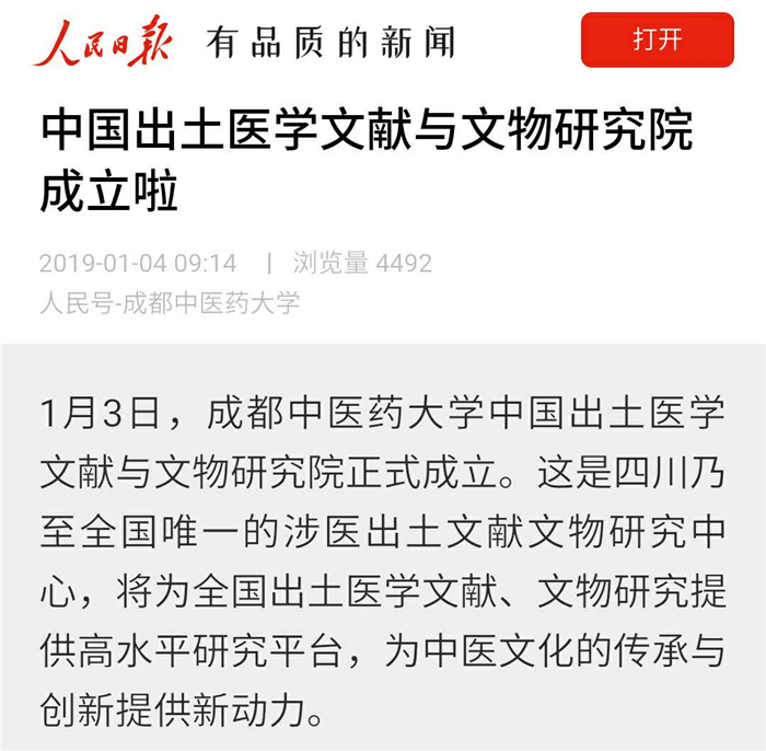 1月3日,beat365在线唯一官网中国出土医学文献与文物研究院正式成立。这是四川乃至全国唯一的涉医出土文献文物研究中心,将为全国出土医学文献、文物研究提供高水平研究平台,为中医文化的传承与创新提供新动力。