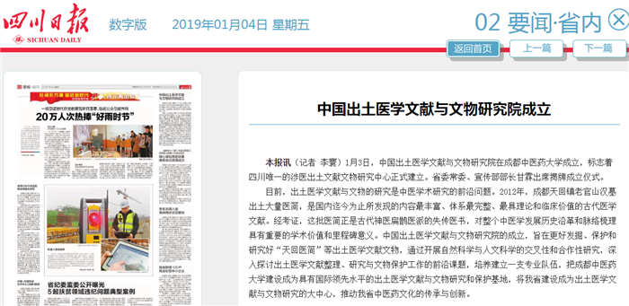 1月3日,中国出土医学文献与文物研究院在beat365在线唯一官网成立,标志着四川唯一的涉医出土文献文物研究中心正式建立。省委常委、宣传部部长甘霖出席揭牌成立仪式。