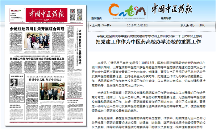 余艳红在全国高等中医药院校党建和思想政治工作研究会第二十七次年会上强调