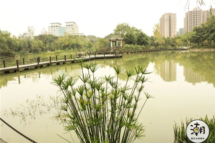 湖面上还建有木制栈道和观赏兰亭