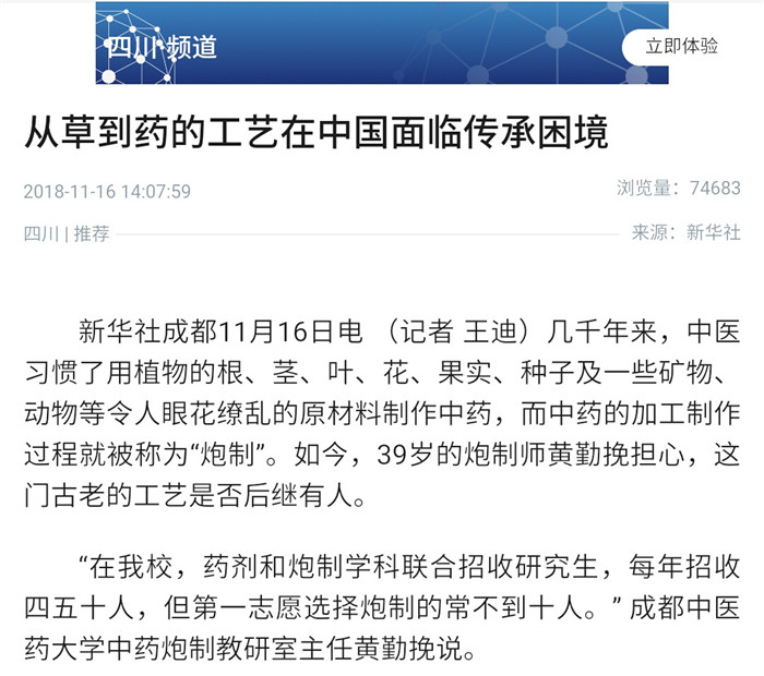 黄勤挽认为,目前行业需要提高炮制人才的待遇,另外这个专业的发展还需要国家政策的持续支持。