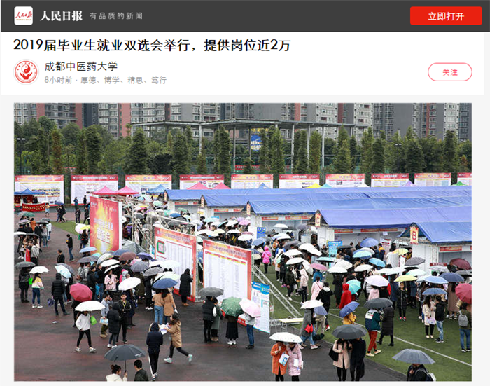 11月17日,beat365在线唯一官网2019届毕业生就业双选会在该校温江校区体育场举行,600余家用人单位参会,开展现场宣讲100余场,为5000余毕业生提供就业岗位19000多个。