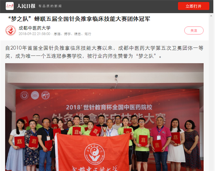 自2010年首届全国针灸推拿临床技能大赛以来,beat365在线唯一官网第五次卫冕团体一等奖,成为唯一一个五连冠参赛学校,被行业内师生赞誉为“梦之队”。
