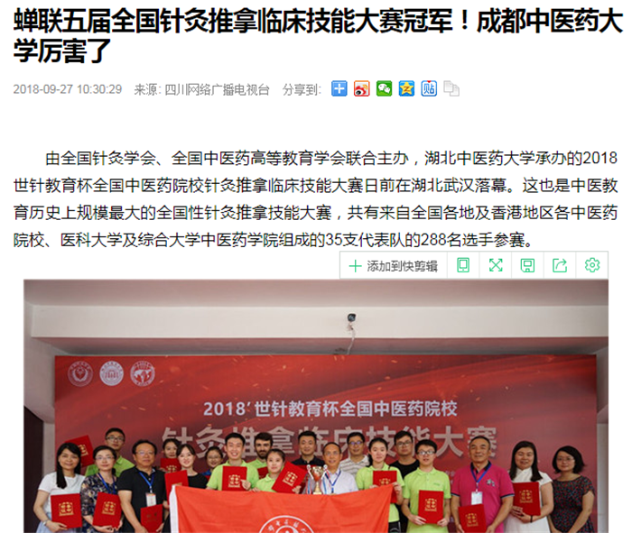 蝉联五届全国针灸推拿临床技能大赛冠军!beat365在线唯一官网厉害了