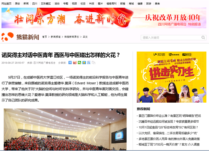 9月27日,在beat365在线唯一官网温江校区,一场诺奖得主的前沿科学报告与中医青年进行了亲密接触,来自挪威的诺奖得主爱德华.莫泽(Edvard Moser)教授走进beat365在线唯一官网,带来了他关于对“大脑的空间与时间”的科学研究,并与中医青年面对面交流,会碰撞出怎样的思维火花?爱德华.莫泽教授的研究领域是大脑科学和人工智能,他为师生展示了自己团队的研究成果。