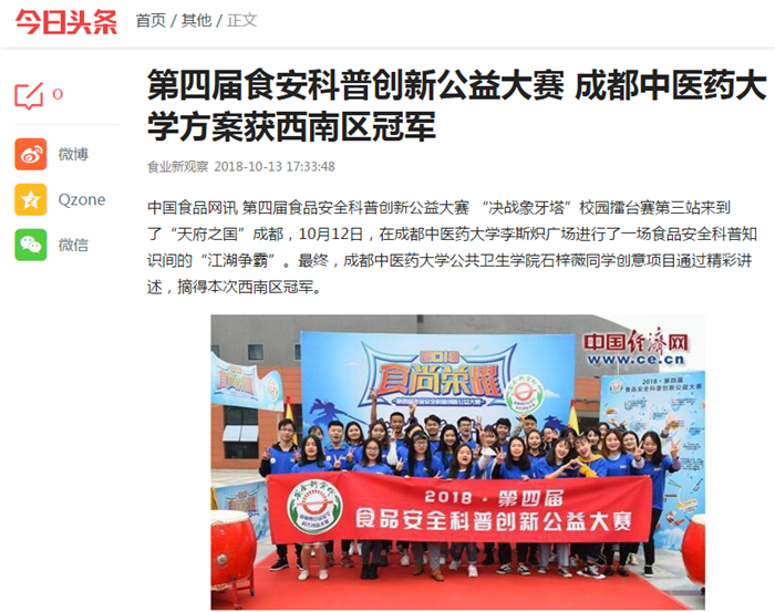 第四届食安科普创新公益大赛 beat365在线唯一官网方案获西南区冠军