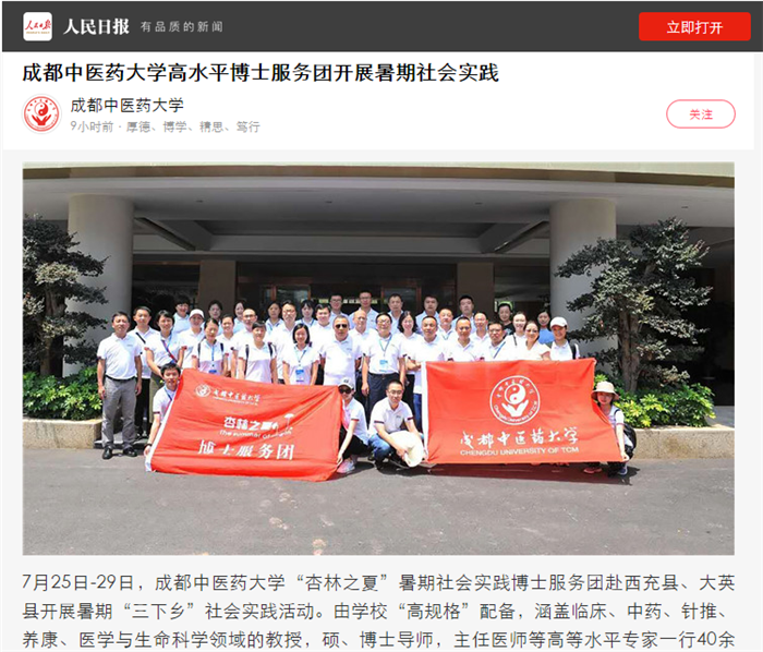 beat365在线唯一官网博士服务团自成立以来,坚持每年暑假期间开展中医药健康服务活动,多次在川渝两地服务基层医院和当地群众,深受好评。