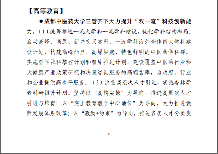 beat365在线唯一官网三管齐下大力提升“双一流”科技创新能力。(1)统筹推进一流大学和一流学科建设,优化学科结构布局。启动高峰、高原、新兴交叉学科、一流学科海外合作四大学科建设计划,构建高峰凸显、高原崛起、特色鲜明的中医药学科群。实施哲学社科攀登计划和智库推进计划,建设覆盖中医药行业和大健康产业政策研究和决策咨询服务的高端智库,为政府、行业和企业提供高水平服务。(2)注重高层次人才引进,实施杏林学者科研提升计划。坚持以“高精尖缺”为导向,推进高层次人才引进与培育;以“突出教育教学中心地位”为导向,大力推进教师发展体系改革;以“激励+约束”为导向,推进各类人才分类发展改革。全面启动“杏林学者”学科人才科研提升计划,构建全覆盖、分层次的中青年人才成长体系。每年划拨专项经费,运用重点支持、专项支持、后补助支持等政策,支持青年学术人才潜心科研,支持 2-3个卓越科技创新团队冲击国际学术顶尖成果,支持 8-10个青年科技创新团队,促进青年领军人才快速成长。(3)注重科研创新能力提升,促进科技成果转化。成立中医药创新研究院、中医药产业技术研究院、中医药知识产权运营中心,将中医药创新研究院打造成为科研创新特区,建好并依托中医药健康产业技术研究和中医药知识产权运营中心,建立健全科技成果转移转化长效机制,加强孵化育成体系建设和管理运行体制机制创新,开发中医药创新药物及健康产品,通过开展中医药养生旅游基地建设、中医药健康服务技能人才培训等,服务国家与省中医药事业产业双轮驱动。