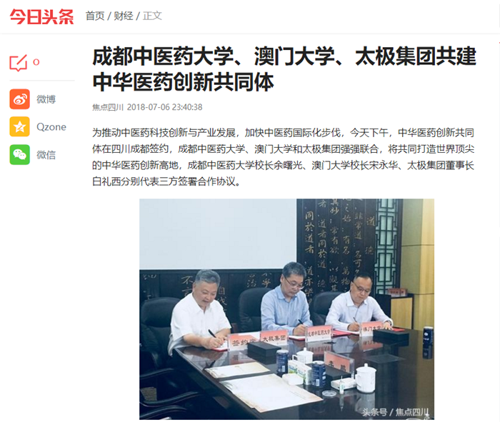 beat365在线唯一官网、澳门大学、太极集团共建中华医药创新共同体