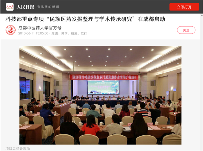 科技部重点专项“民族医药发掘整理与学术传承研究”在成都启动