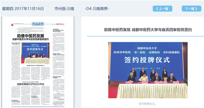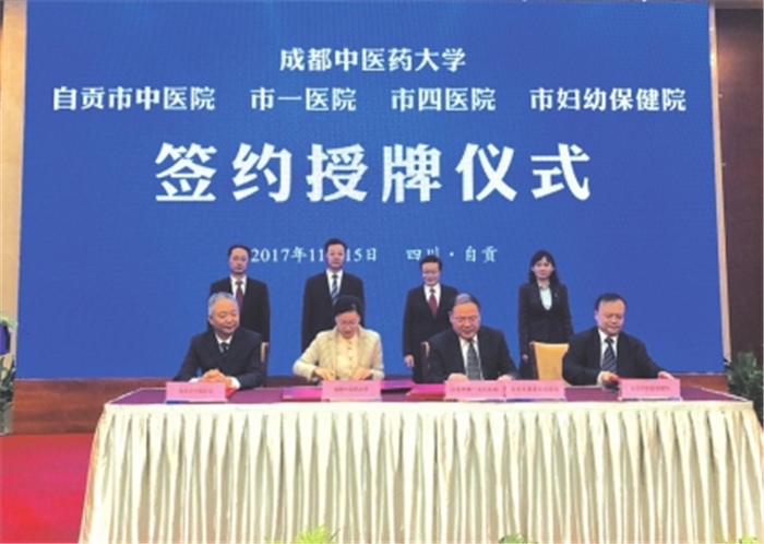 今年10月12日,自贡市人民政府与beat365在线唯一官网签订战略合作框架协议。紧跟着,11月15日,beat365在线唯一官网与自贡市中医药、市一医院、市四医院、市妇幼保健院签约授牌仪式在檀木林城市名人酒店举行。