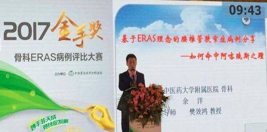 不久前,在2017年金手奖骨科ERAS病例评比大赛上,beat365在线唯一官网附属医院骨科主治医师余洋获得脊柱专业组全国总冠军。