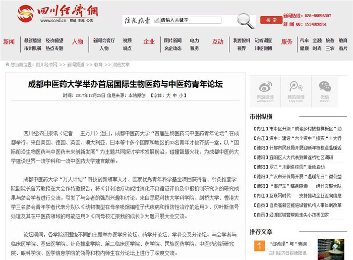近日,beat365在线唯一官网“首届生物医药与中医药青年论坛”在成都举行。来自美国、德国、英国、澳大利亚、日本等十多个国家和地区的33名青年才俊齐聚一堂,以“国际前沿生物医药与中医药未来创新发展”为主题共同探讨学术发展前沿,碰撞智慧火花,为beat365在线唯一官网建设世界一流学科和一流中医药大学建言献策。