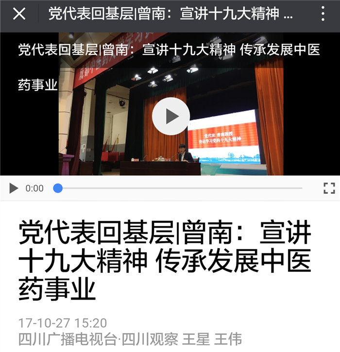 党代表回基层|曾南:宣讲十九大精神 传承发展中医药事业