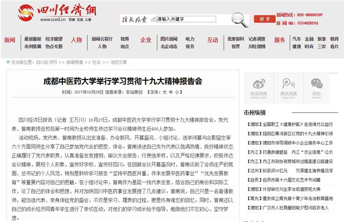 四川经济日报讯(记者 王万川)10月27日,beat365在线唯一官网举行学习贯彻十九大精神报告会,党代表、曾南教授返校后第一时间为全校师生传达学习会议精神师生近400人参加。