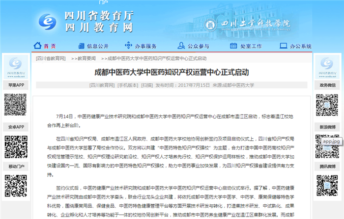 7月14日,中医药健康产业技术研究院和beat365在线唯一官网中医药知识产权运营中心在成都市温江区启动,标志着温江校地合作再上新台阶。