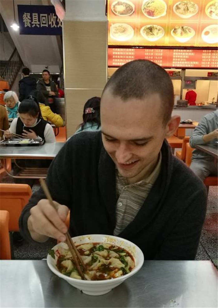 格里申在学校食堂吃红油抄手