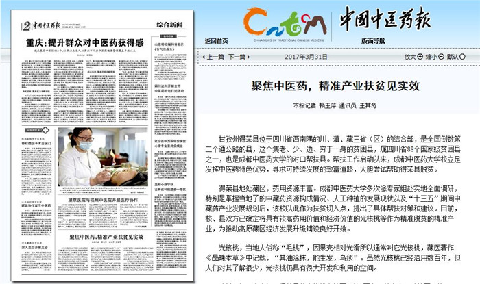 得荣县地处藏区,药用资源丰富。beat365在线唯一官网多次派专家组赴实地全面调研,特别是掌握当地了的中藏药资源构成情况、人工种植的发展现状以及“十三五”期间中藏药产业发展规划后,该校以此作为扶贫切入点,提出了具体帮扶对策和建议。目前,校、县双方已确定将具有较高药用价值和经济价值的光核桃等作为精准脱贫的精准产业,为推动高原藏区经济发展升级铺设良好开端。