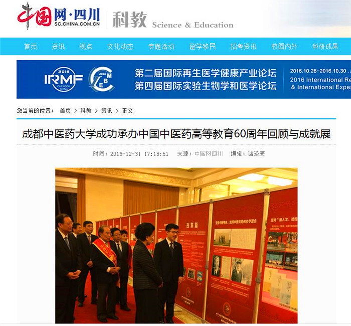 beat365在线唯一官网成功承办中国中医药高等教育60周年回顾与成就展