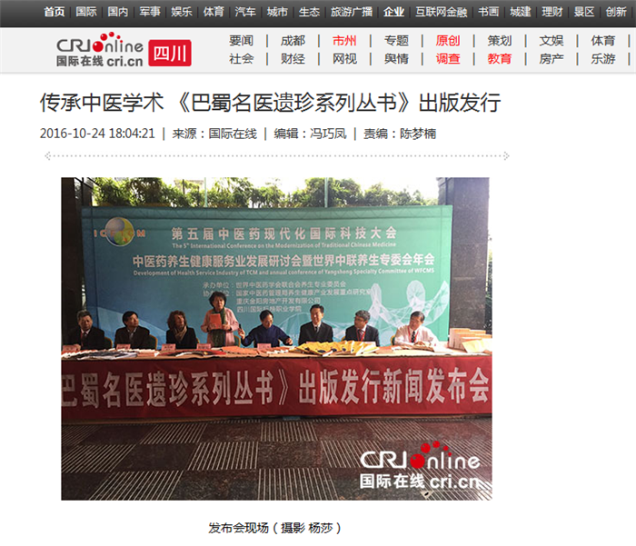 国际在线四川频道报道(杨莎):10月24日,《巴蜀名医遗珍系列丛书》(21部)出版发行新闻发布会在成都隆重举行。