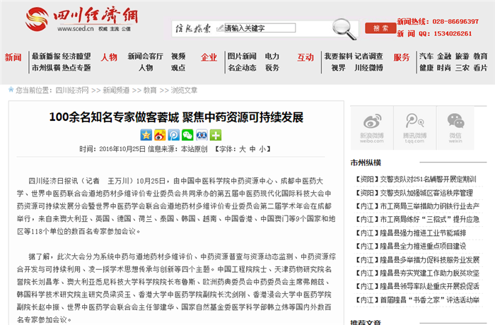 100余名知名专家做客蓉城 聚焦中药资源可持续发展