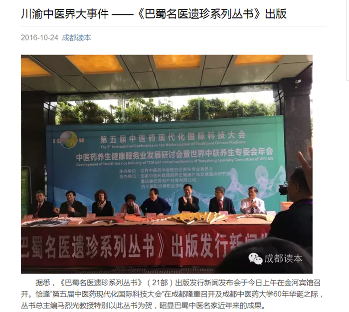川渝中医界大事件 ——《巴蜀名医遗珍系列丛书》出版
