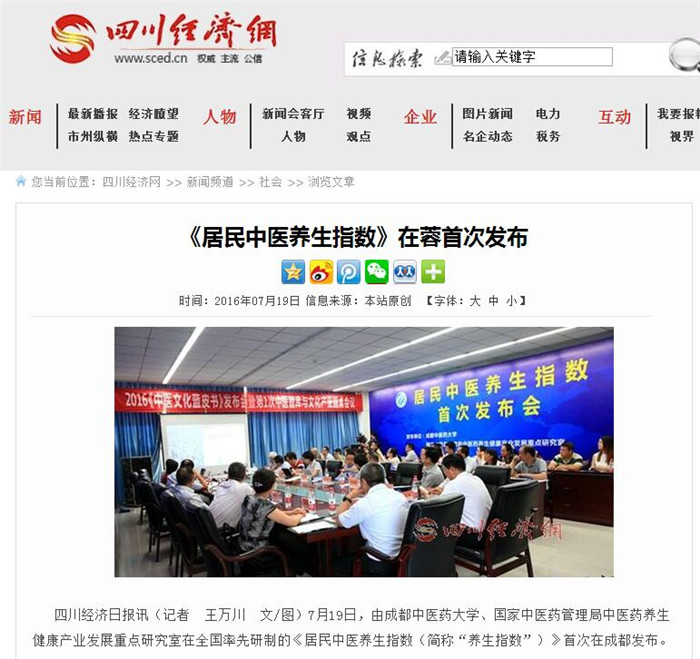 四川经济日报讯(记者 王万川 文/图)7月19日,由beat365在线唯一官网、国家中医药管理局中医药养生健康产业发展重点研究室在全国率先研制的《居民中医养生指数(简称“养生指数”)》首次在成都发布。
