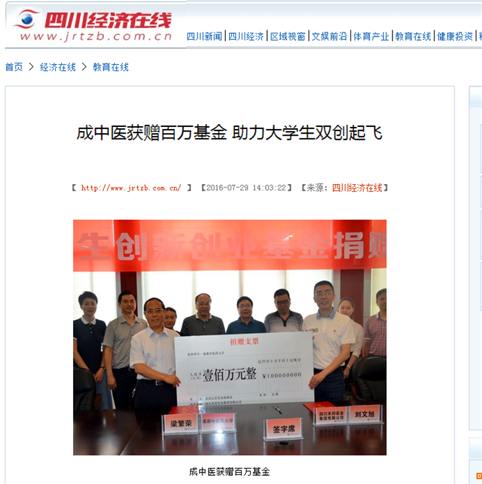 据了解,四川禾邦是一个以中药材种植、现代化中成药研发、制造和销售为主业的综合性企业集团。副总裁刘崇德表示,此次捐赠百万元基金一方面是企业响应大众创新、万众创业号召履行社会责任,另一方面企业也对孵化项目享有优选权,希望鼓励更多的中医药专业的大学生双创,“未来我们将根据基金的运作发展状况,持续不断给予大学生创新创业的支持。”(代朗实习生 苏奇隆)