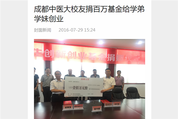 成都中医大校友捐百万基金给学弟学妹创业