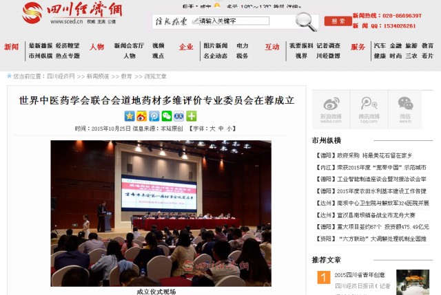 四川经济日报讯 (王其奇 记者王万川 实习生 曹秋媛)今(25)日,世界中医药学会联合会道地药材多维评价专业委员会成立大会暨第一届学术年会在成都举行。专委会由beat365在线唯一官网发起,以西南道地药材协同创新中心为基础成立,旨在促进世界各国(地区)在道地药材多维评价领域的交流与合作,整合境内外相关领域的学术资源,推动全球道地药材产业稳步发展。