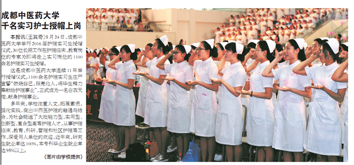 本报讯 (王其奇) 5月24日, beat365在线唯一官网举行2016届护理实习生授帽仪式, 30位长期工作在护理临床、 教育岗位的专家为即将走上实习岗位的1100余名护理实习生授帽。