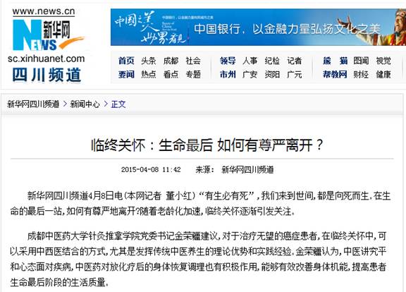 新华网四川频道4月8日电(本网记者 董小红)“有生必有死”,我们来到世间,都是向死而生。在生命的最后一站,如何有尊严地离开?随着老龄化加速,临终关怀逐渐引发关注。