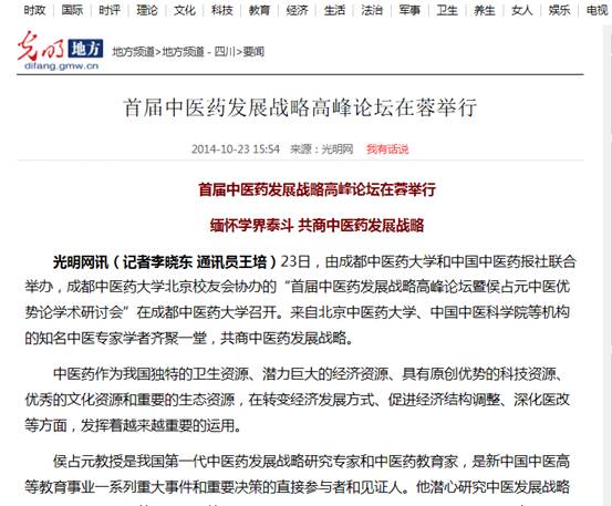 首届中医药发展战略高峰论坛在蓉举行 缅怀学界泰斗 共商中医药发展战略