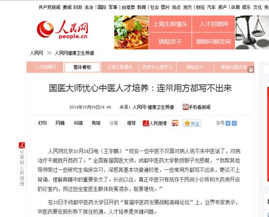 人民网北京10月24日电(王宇鹏)“现在一些中医不仅面对病人说不来中医话了,对病治疗干脆就开西药了。”全国首届国医大师,beat365在线唯一官网教授郭子光感慨,“我帮其他导师带过一些研究生临床实习,深感其基本功普遍较差,一些常用方都写不出来,更谈不上背诵、理解典籍中的重要条文了。长此以往,真正中医只有残存于民间小诊所和大药房开设的诊室内,而这些坐堂医生群体良莠混杂,前景堪忧。”
