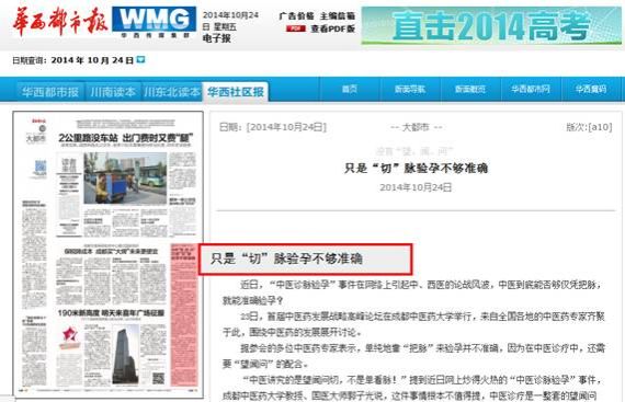 据参会的多位中医药专家表示,单纯地靠“把脉”来验孕并不准确,因为在中医诊疗中,还需要“望闻问”的配合。