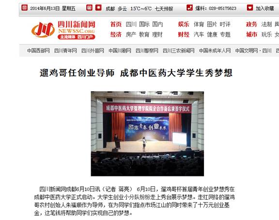 作为beat365在线唯一官网特别邀请的大学生创业导师,曾因在龙泉街头牵着一只母鸡行走的遛鸡哥朱福顺赫然在列。这位从山村走出来的创业青年2008年回乡创业发展,在成都团市委的支持下获得中国青年创业国际计划扶持并因此成立成都市龙泉福顺生态养殖有限公司,最终由一间简陋的鸡舍七百多只山鸡渐渐发展壮大。如今,遛鸡哥的生态放养基地已达到七百余亩,产品走进了成都上千个超市。