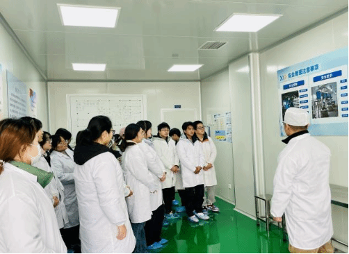在参观实践环节,同学们先后在指导老师的引导下,对企业创新平台,小容量注射剂车间和QC实验室。在创新平台,指导老师围绕平台内配备的部分研发设备展开讲解,同时着重强调了实验操作中的安全防护规范与注意事项。在小容量注射剂车间,同学们近距离观察了注射剂生产的全流程,自动化的生产线高速运转,从洗瓶、灌装、封口到灭菌、灯检,每一个工序都在严格的无菌环境下有序进行,让同学们切实感受到现代化制药车间的高效与规范。在QC实验室,同学们学习了药品原料检验、半成品检测、成品质量把控等环节。精密的检测仪器、严谨的实验流程、标准化的操作规范让同学们深刻认识到质量检测对于药品生产的重要性。