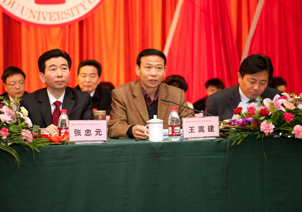 王嵩建代表省委教育工委、省教育厅向大会的召开表示祝贺,他在充分肯定学校取得成绩的同时提出希望:一是要巩固学习实践科学发展观活动的重要成果,积极推动工会参与学校民主管理和监督;二是要充分发挥教代会的作用,深入推进学校教育教学改革发展;三是要加强工会自身建设,不断提升服务学校发展大局的能力。