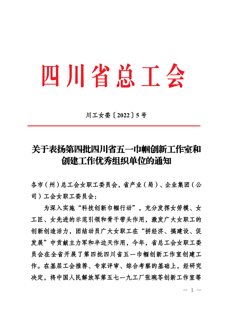 巾帼展风姿,创新看我行——beat365官网赵凌创新工作室荣获四川省“五一巾帼创新工作室”称号