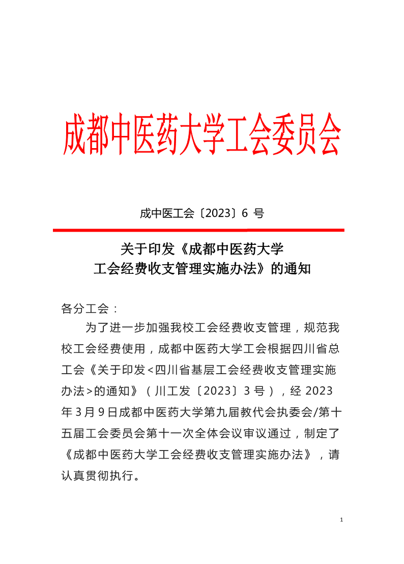 成中医工会[2023]6号《beat365在线唯一官网工会经费收支管理实施办法》的通知
