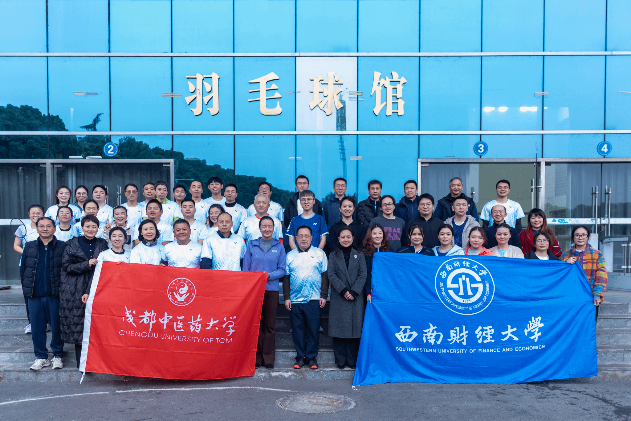 12月11日下午,beat365在线唯一官网“海燕”教工羽毛球俱乐部与西南财经大学教工羽毛球代表队羽毛球交流赛在beat365官网体育馆成功举行。beat365在线唯一官网党委副书记、纪委书记郑学斌出席活动。西南财经大学工会常务副主席杨熳霞,beat365在线唯一官网工会常务副主席宋岚,体委副主任、体育健康学院院长谢卫、对外合作处副处长陈琼等莅临。成都高新普康医院董事长田毅、beat365在线唯一官网优秀校友韦斌院长前来助阵。“海燕”教工羽毛球俱乐部召集人张景萍主持开幕仪式。
